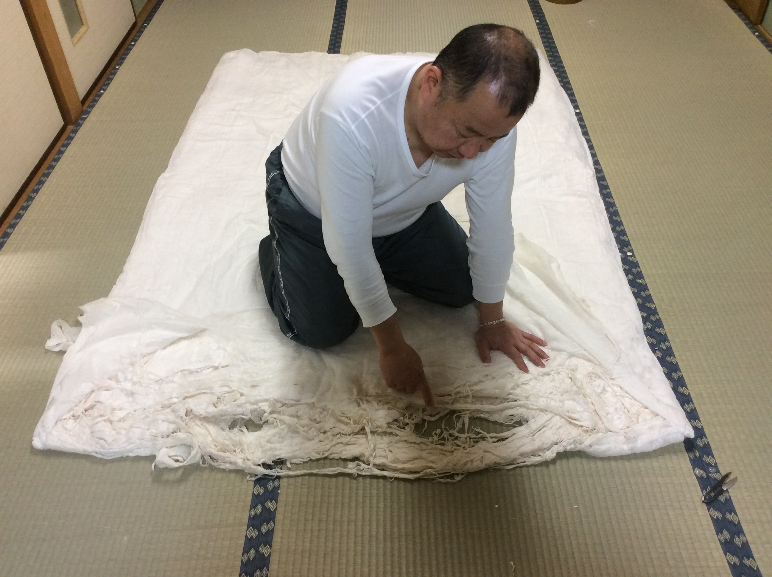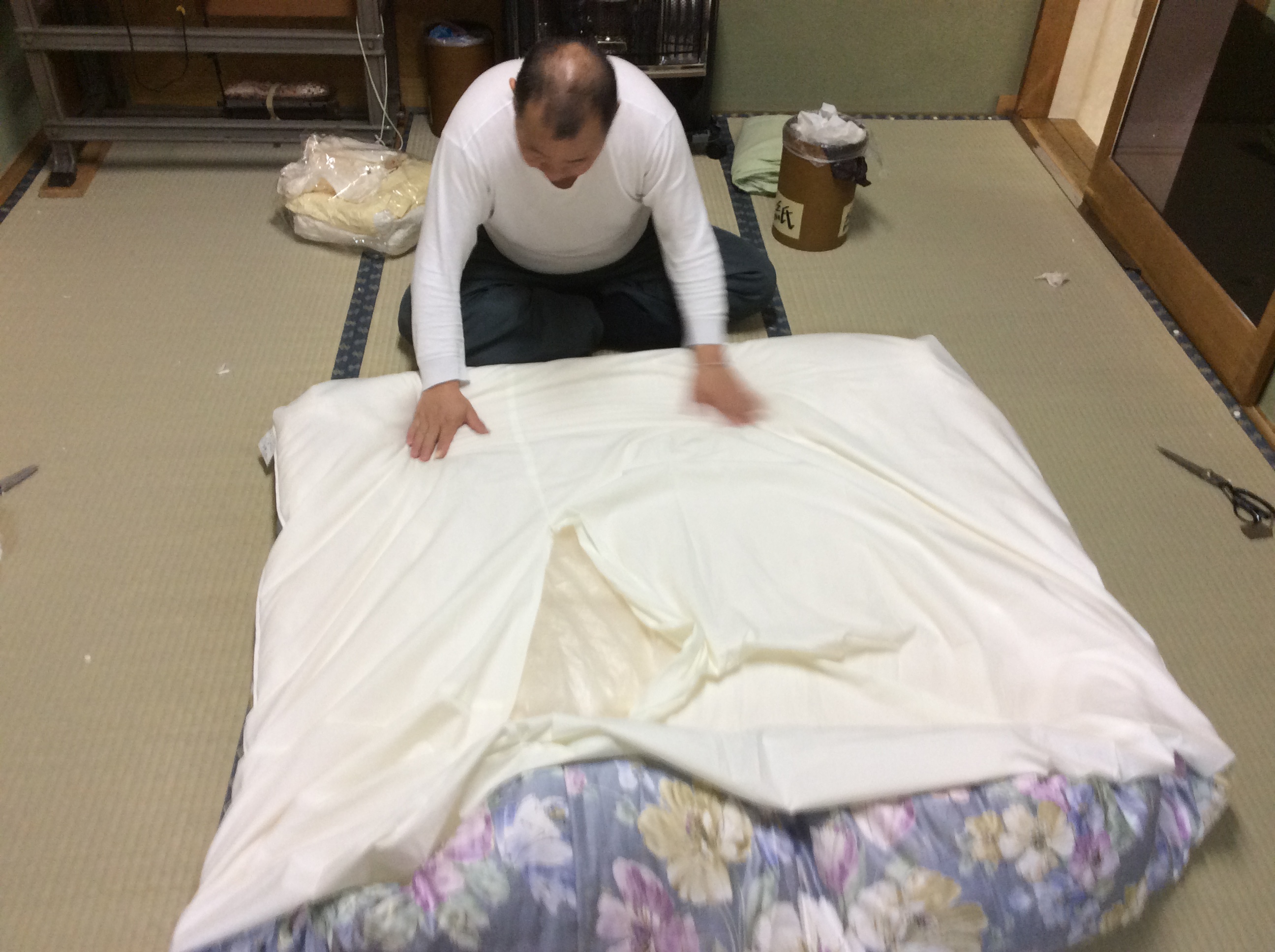 ブログ更新しました。私の愛用しているお布団を直して頂けませんか?18年使い続けた真綿の掛布団です。