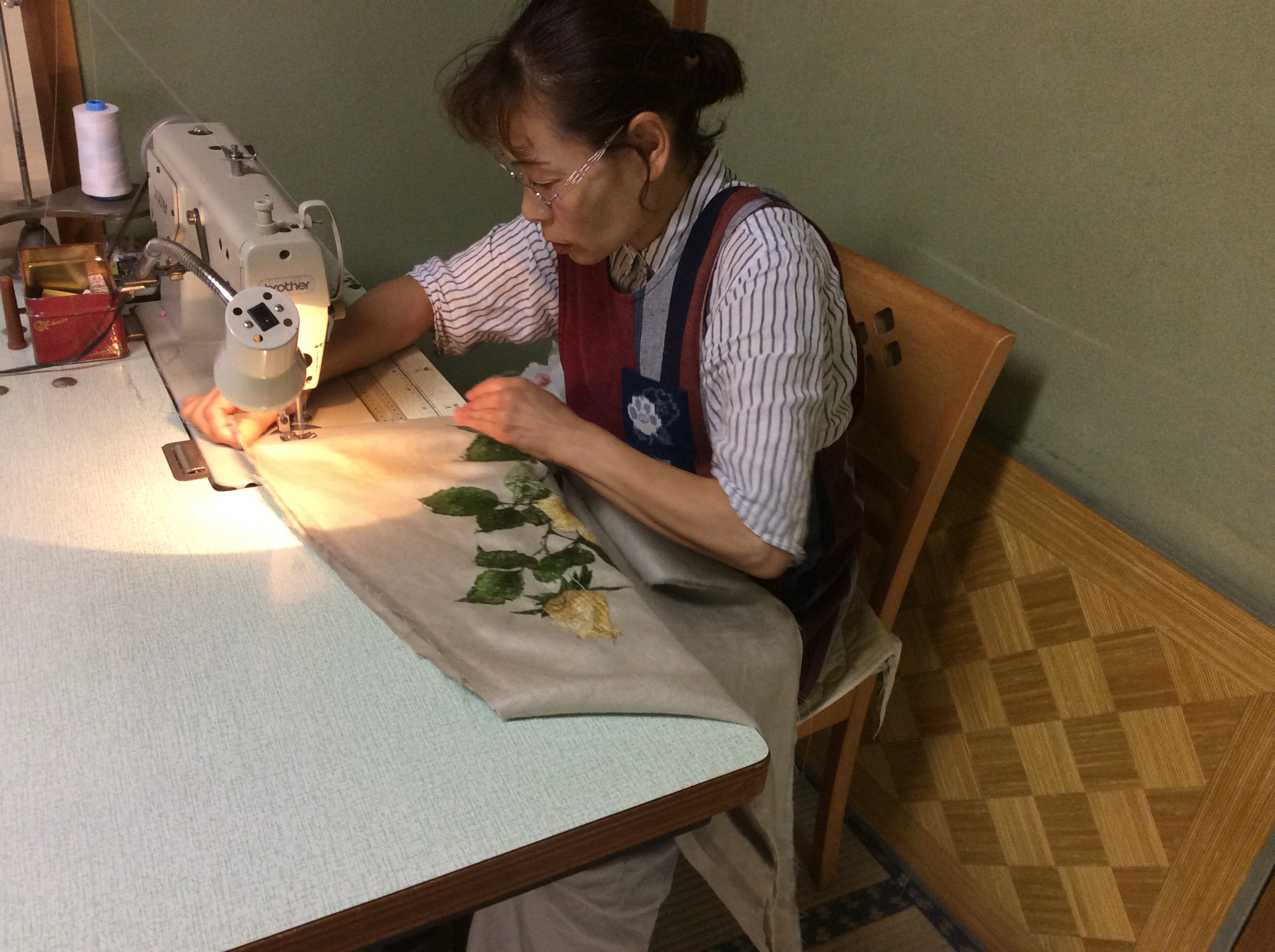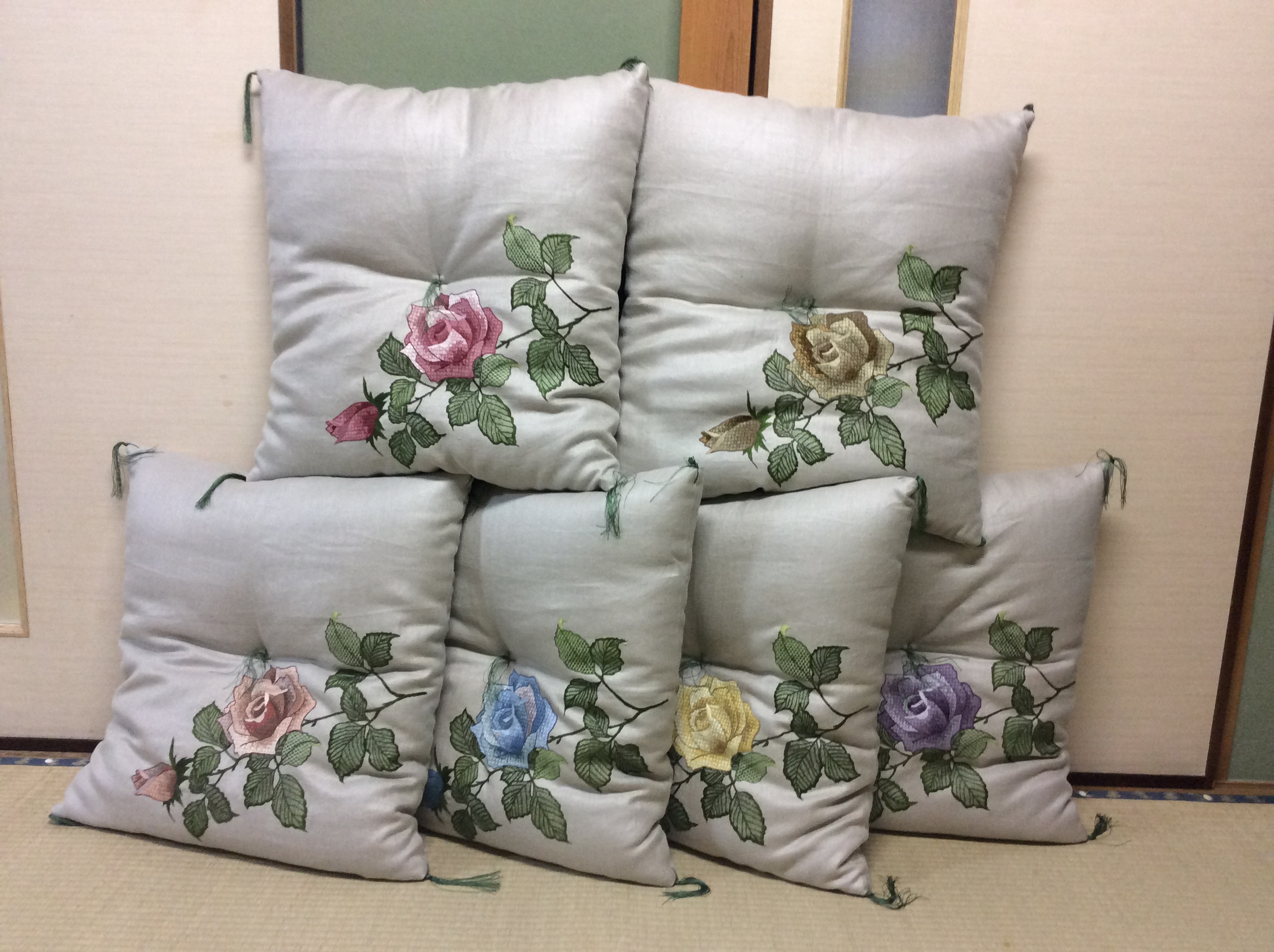 お客様の作られた刺繡入りの生地で座布団つくり